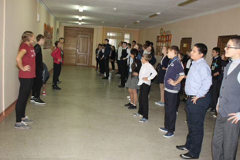 Первое мероприятие, проходившее в рамках акции, - это общешкольная зарядка. На первом уроке все, от мало до велика, выходили в рекреации школы и, выполняя простые физические упражнения, заряжались энергией на весь день.